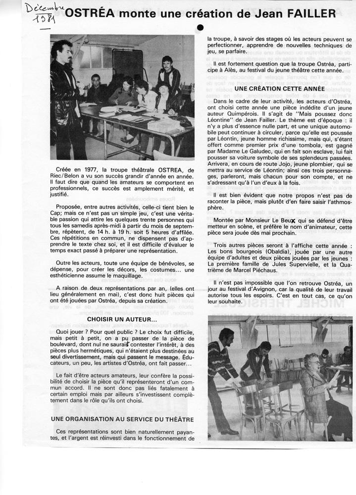 Site de l'association THEATRE OSTREA de Riec sur Belon