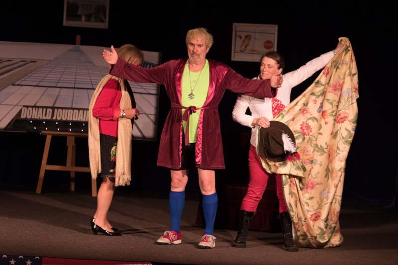 « Le bourgeois gentilhomme » de Molière. Tout le monde connaît Monsieur Jourdain, riche bourgeois qui voudrait faire partie de la cour des grands. A qui pourrait-on penser aujourd’hui ? Mais à Donald Trump, of course ! Certes la réalité de The Donald dépasse la fiction moliéresque, mais voilà un pied de nez qui soulage !